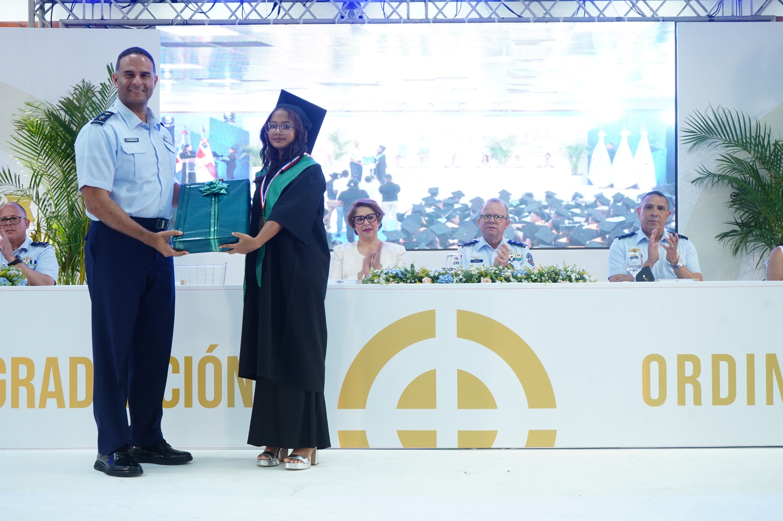 El acto contó además con la presencia del general de brigada piloto Mao Enua Gómez Vásquez, FARD, comandante de la Base Aérea San Isidro; el general de brigada piloto Manuel José Brito Estepan, FARD, intendente general de la FARD; el coronel piloto Osvaldo Antonio Pérez, FARD (DEM), director del centro educativo; la coronel Isabel López Sánchez, FARD (DEM), MA, directora regente docente del CNSPS; la primer teniente pedagoga Lidia María Abreu Reyes, FARD, MA, directora docente del CNSPS, junto a su equipo de trabajo, así como autoridades civiles y militares.